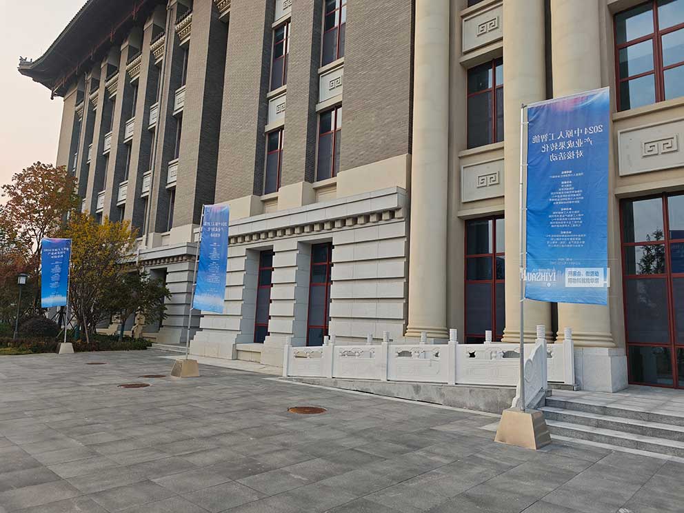 作為活動(dòng)的重要一環(huán),鄭州道旗出租公司以其專業(yè)的服務(wù)和獨(dú)特的設(shè)計(jì),為活動(dòng)現(xiàn)場(chǎng)增添了濃厚的科技氛圍。道旗上不僅印有活動(dòng)的主題和LOGO,還巧妙地融入了人工智能的元素,生動(dòng)展現(xiàn)了人工智能技術(shù)的魅力與潛力。