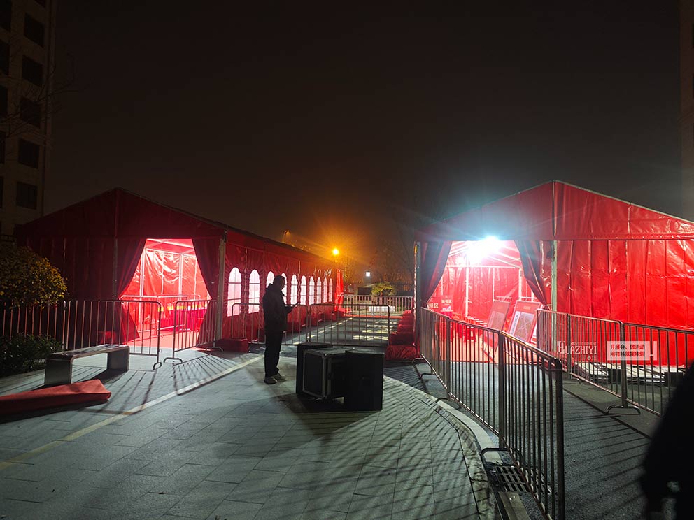 鄭州鐵馬出租布置護欄助力正都花園分房活動。在正都花園正在舉辦一場新房分房活動,現場有兩座紅色篷房吸引眼球。除此之外,還有一片片鐵馬護欄連接在一起,在篷房外面布置的秩序井然。