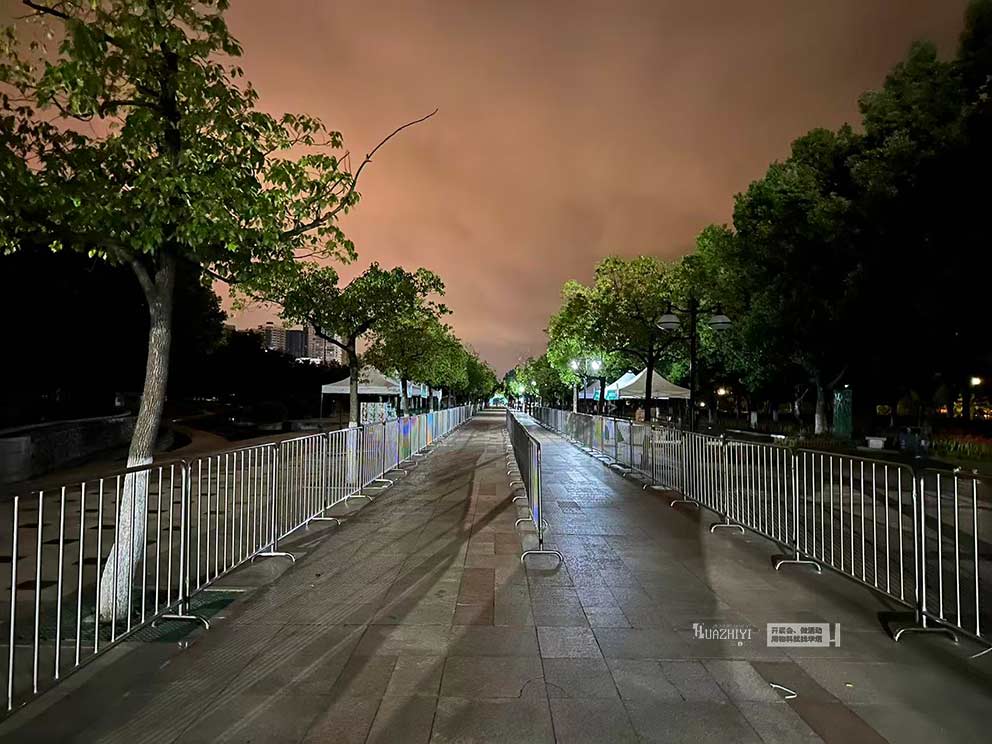 中途直道段按“雙側(cè)平行”布控,鐵馬沿賽道兩側(cè)整齊排列,內(nèi)側(cè)距離賽道邊緣30厘米,外側(cè)預(yù)留1.5米寬觀眾區(qū),形成“選手賽道+觀眾隔離帶”的清晰邊界;轉(zhuǎn)彎處則采用“弧形漸變”布控,鐵馬按轉(zhuǎn)彎半徑呈弧形排列,外側(cè)鐵馬適當(dāng)加密,引導(dǎo)選手自然轉(zhuǎn)向,同時(shí)防止觀眾闖入彎道危險(xiǎn)區(qū)域。